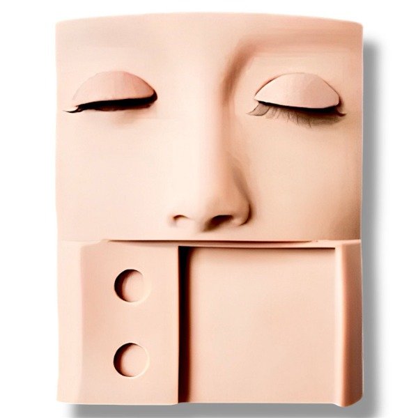 La cara de piel sintética para practicar pestañas es un accesorio diseñado para mejorar las habilidades en la aplicación de extensiones de pestañas. Hecha de piel sintética de alta calidad, simula la textura y apariencia de la piel humana, brindando una superficie realista para practicar y perfeccionar técnicas de aplicación de pestañas. Es una herramienta ideal para estilistas y profesionales que desean mejorar su destreza y precisión en el cuidado de las pestañas.