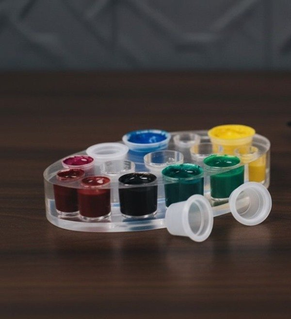 Tiene 15 agujeros para copa de tinta: 3 agujeros grandes, 6 agujeros medianos y 6 agujeros pequeños. Perfecto para organizar y colocar pigmento o tinta para tatuaje. El diseño único y la hermosa apariencia hacen que sea agradable combinar con la decoración de tu ambiente de trabajo.