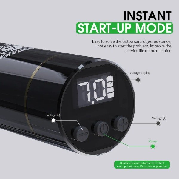 Disfrute de ajustes de voltaje personalizables para un rendimiento personalizado. Adapte la potencia a su técnica y pigmento específicos para obtener resultados óptimos en todo momento.