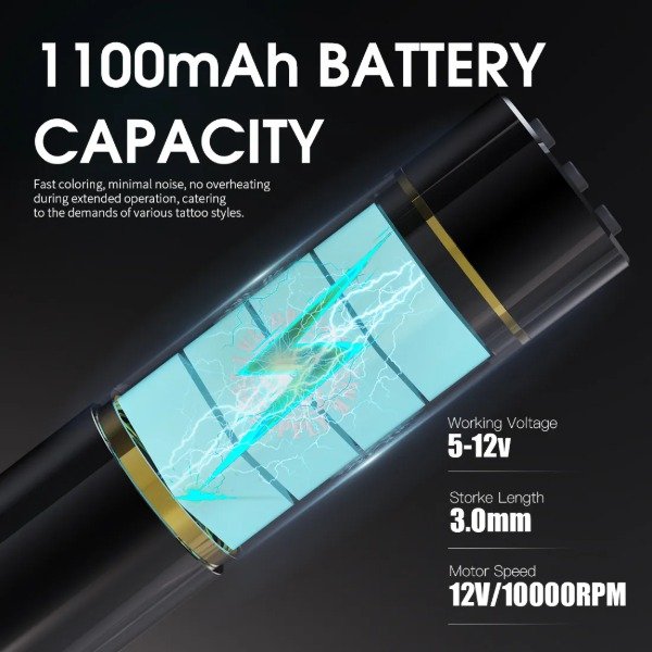 Peso, g102Voltaje, V4-12Longitud de carrera, mm3.0ColorNegro Capacidad de la batería, mAh1100CitaPara tatuajes y tatuarConectorTipo C, USBtipo de alimentaciónInalámbrico